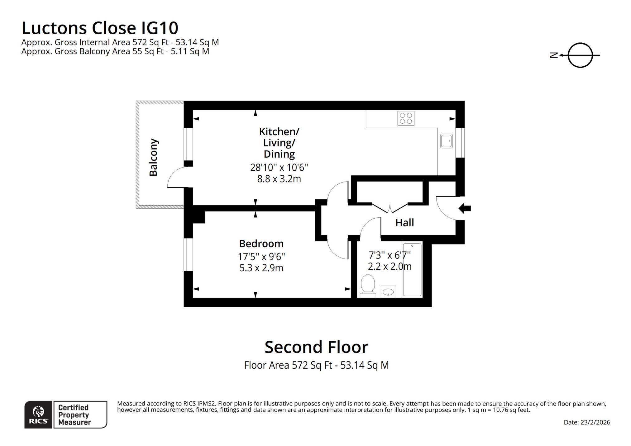The spacious double bedroom features impressive floor-to-ceiling glazing, creating a bright and airy feel. The modern bathroom comprises a stylish suite and heated towel rail, while the entrance hall provides excellent built-in storage.